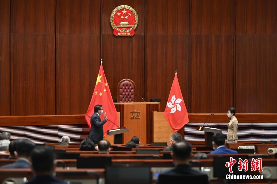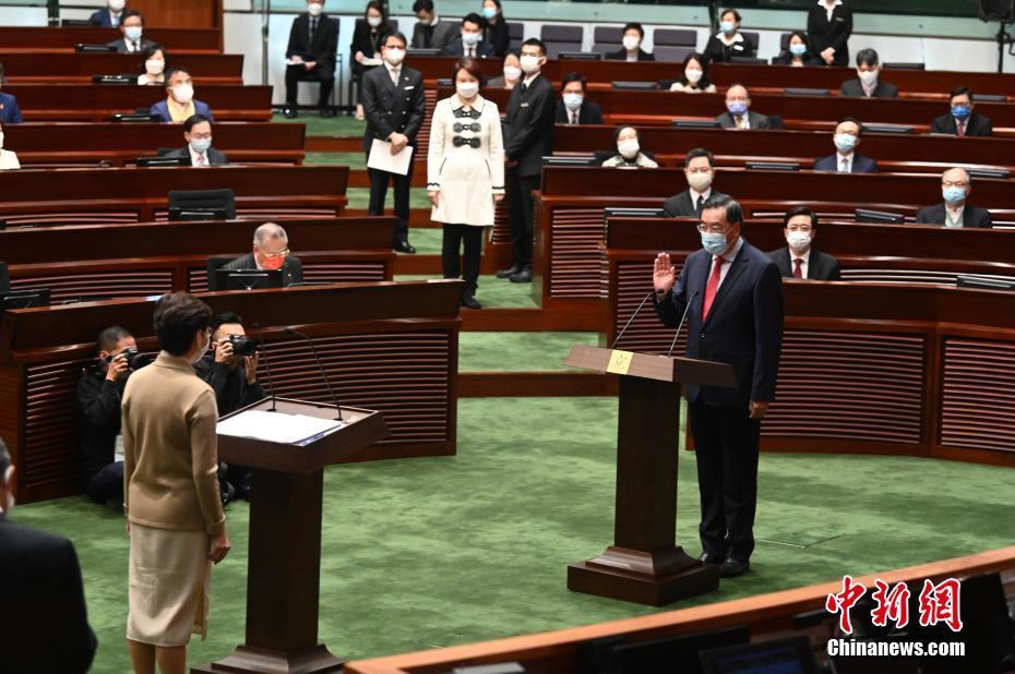1月3日上午,香港特区第七届立法会已依法组成,新当选的立法会90名议员在行政长官监誓下完成宣誓。图为梁君彦宣誓。 中新社记者 李志华 摄