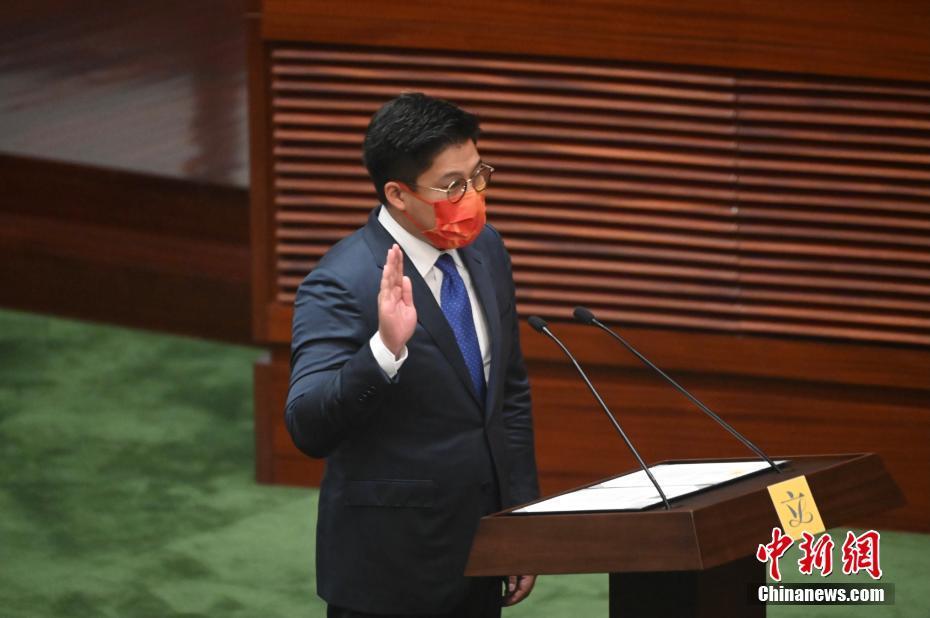 1月3日上午,香港特区政府在立法会综合大楼会议厅举行第七届立法会议员的宣誓仪式,孙东、谭岳衡、周文港以普通话宣誓。图为谭岳衡以普通话进行宣誓。 中新社记者 李志华 摄