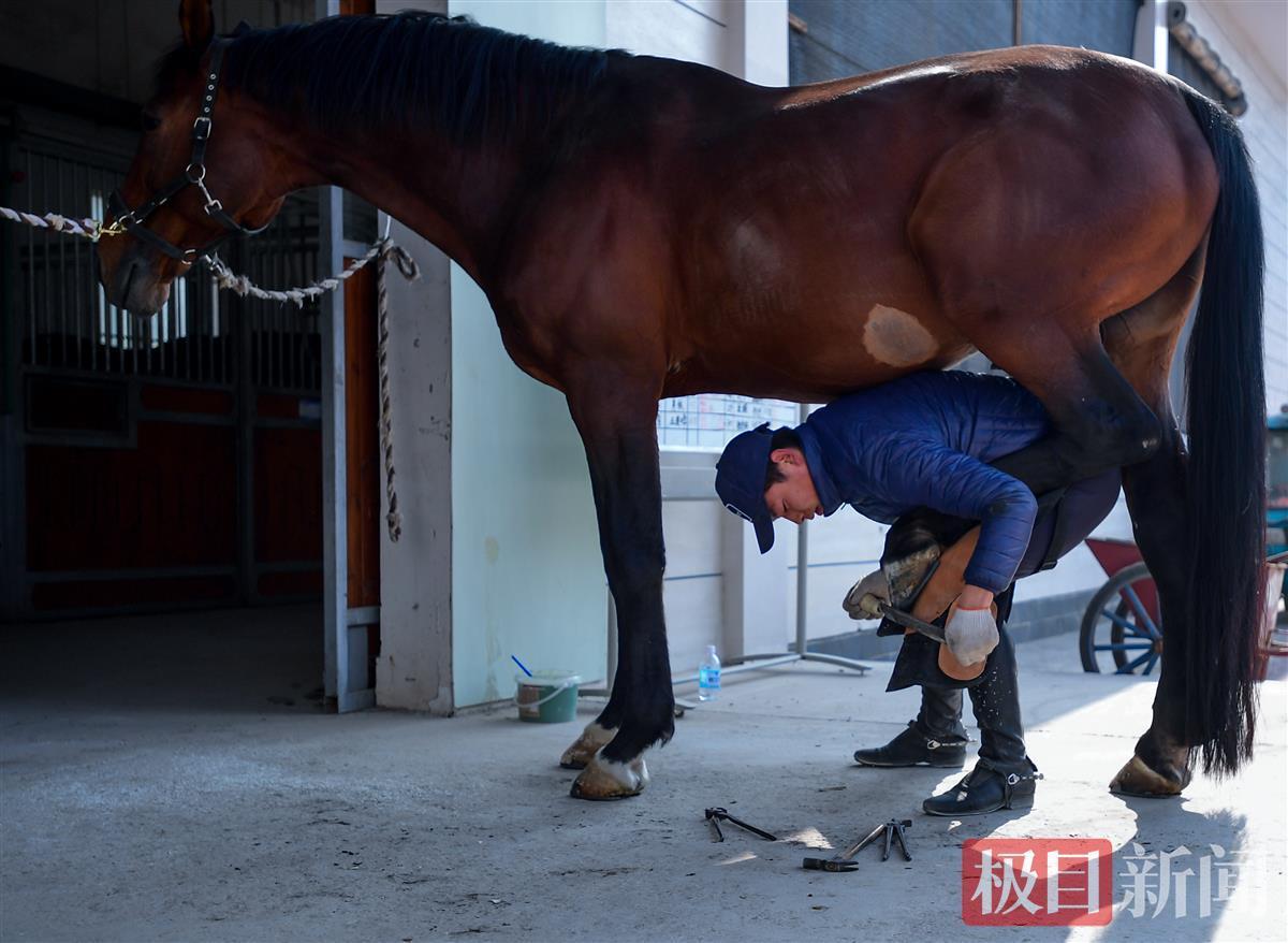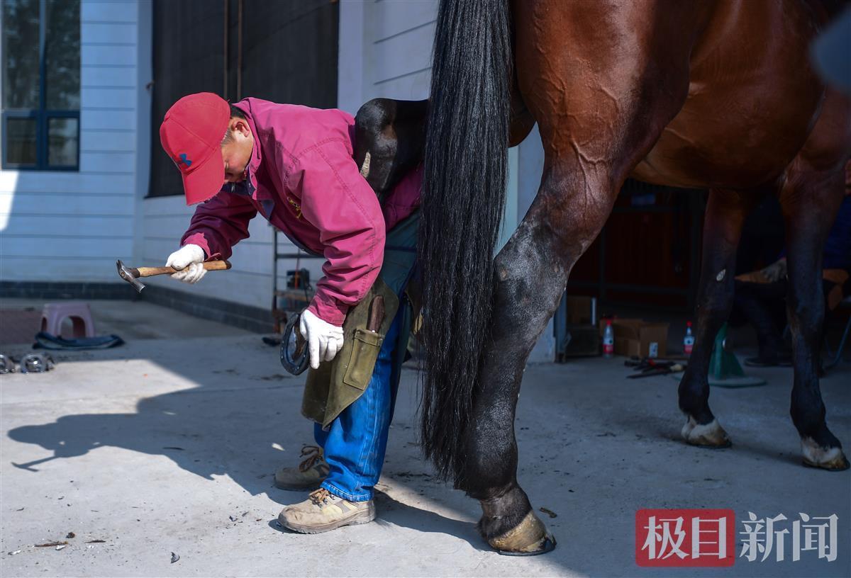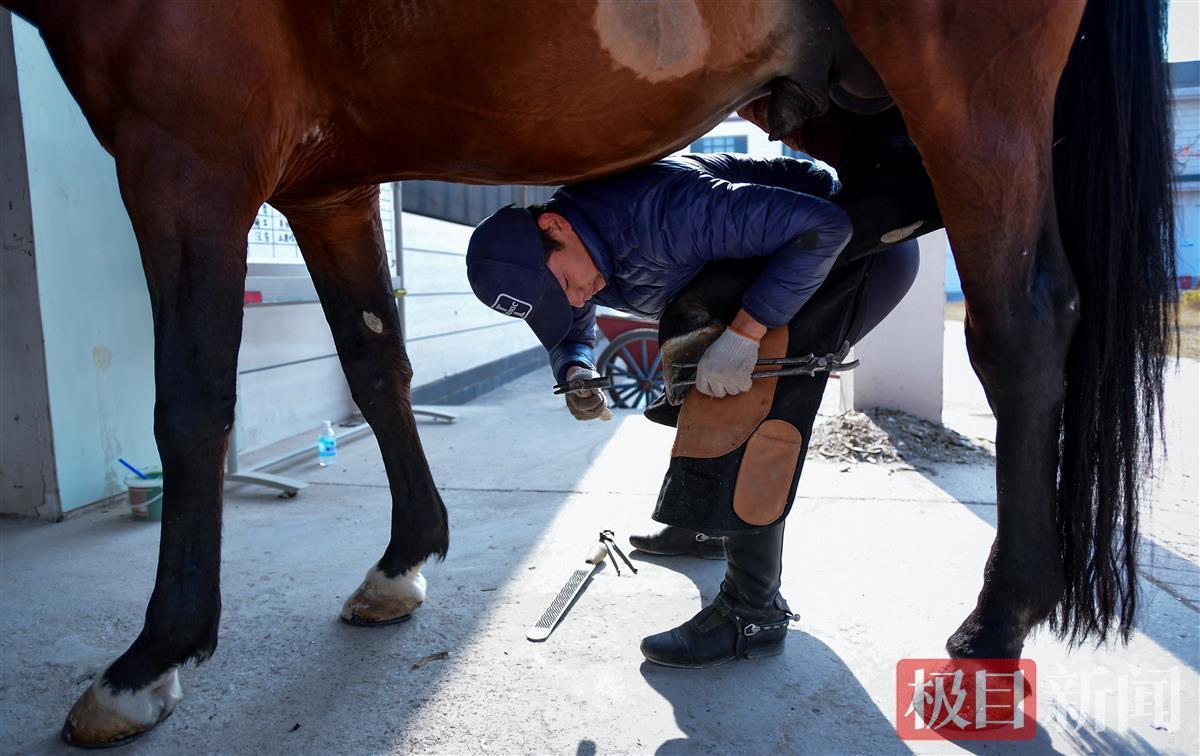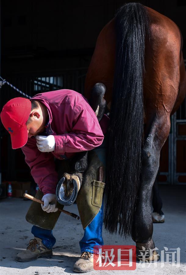 “给马钉上马蹄铁,就像是鞋子对于人类一样,不同的是,马“穿鞋”需要用钉子,由于这些钉子是钉在硬化的角质里,所以马儿是没有痛感的。当马蹄铁磨损严重时便需要更换,而更换时,为了让马蹄铁更加贴合马蹄,通常会选择与上一次打孔不同的马蹄铁,这是为了防止长期用一个钉孔从而造成马蹄铁脱落。”给马匹“穿鞋”的师傅向记者介绍着。