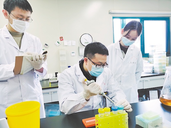 武汉市中心医院马丁院士工作站内,田训指导学生实验。 (记者 余瑾毅 通讯员 马遥遥 摄)