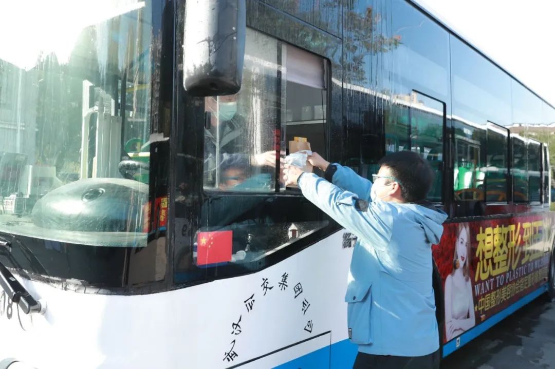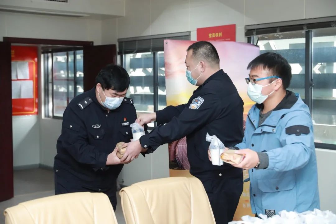 在公交车总站、交警大队等流动早餐点,领到早餐的“城市唤醒者”,脸上也都泛起了灿烂笑容。