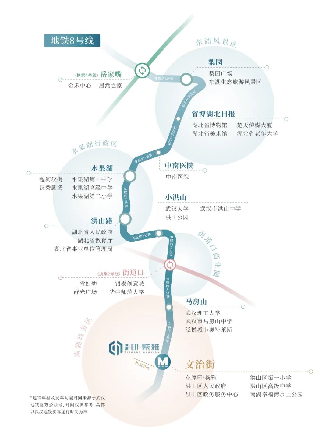 轨道交通的密集铺排,带来便利的不仅是交通,这些深藏于都市繁华之下的交通要道,将城市资源版块快速缝合,焕新城市居住格局。地铁8号线,将意味着武昌政务、经济和文化核心功能的南湖政务区、街道口商业圈及高校群、中南路生活圈、水果湖行政中心、东湖风景区、徐东商业圈串联在一起,打通了武昌二环优质的城市资源组合。