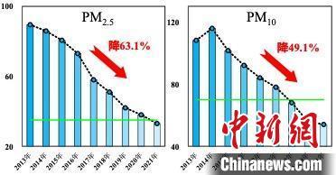 于建华称,在蓝天显著增加的同时,重污染天数大幅减少,发生频率、峰值浓度、持续时间均明显下降。2021年出现重污染日8天,较2013年减少50天,降幅高达86.2%。夏季秋季PM2.5重污染基本消除。