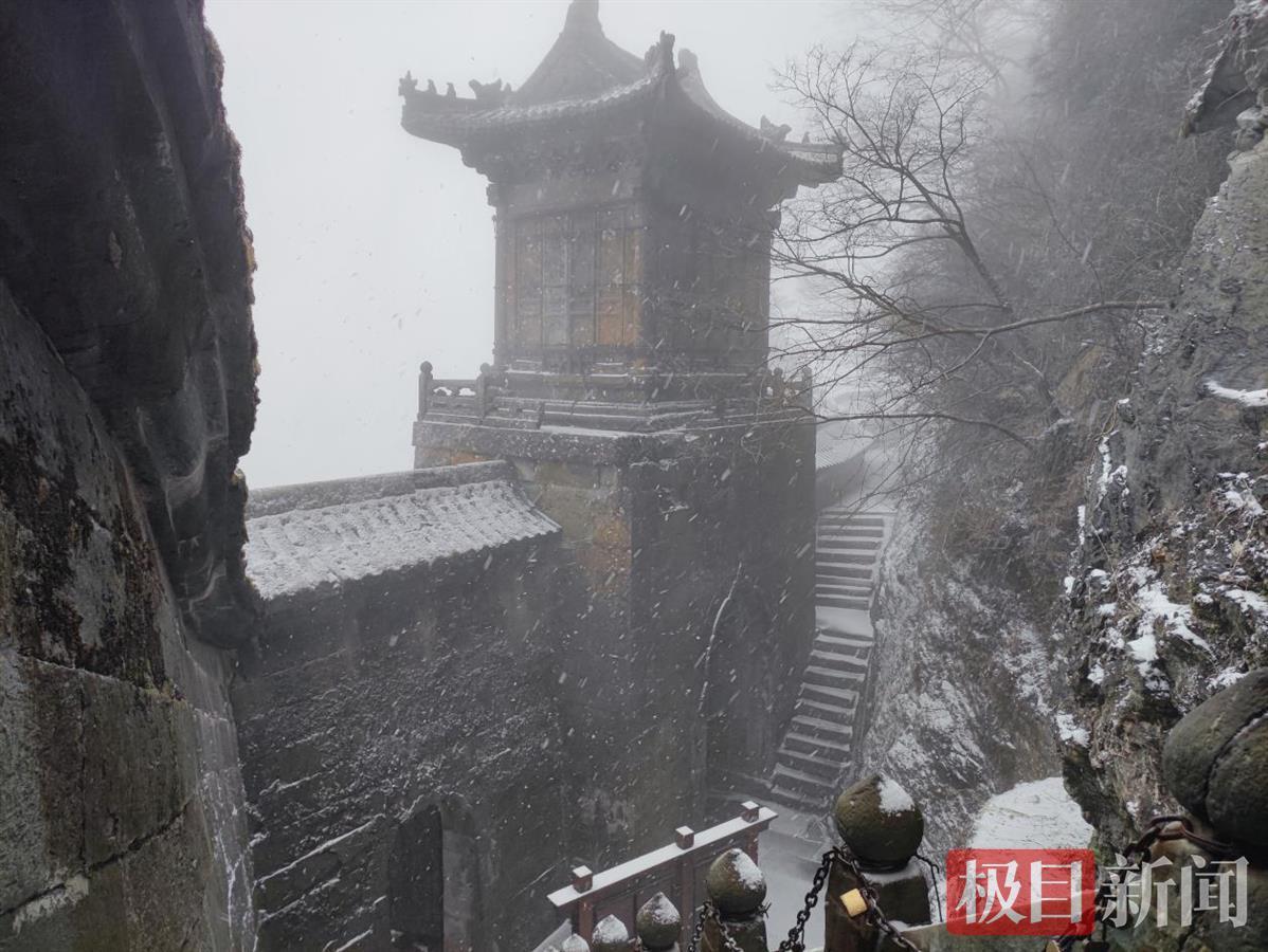 瑞雪兆丰年,目前武当山景区各景点以中雪为主,风力在4级以上,金顶景点温度目前已降至零下7°左右,请前来游玩、祈福的游客注意保暖,也请在欣赏雪景的同时注意脚下路滑,避免意外情况的发生。