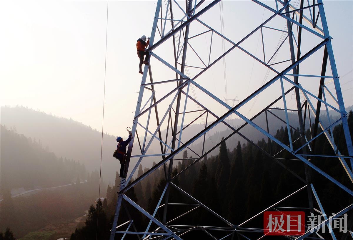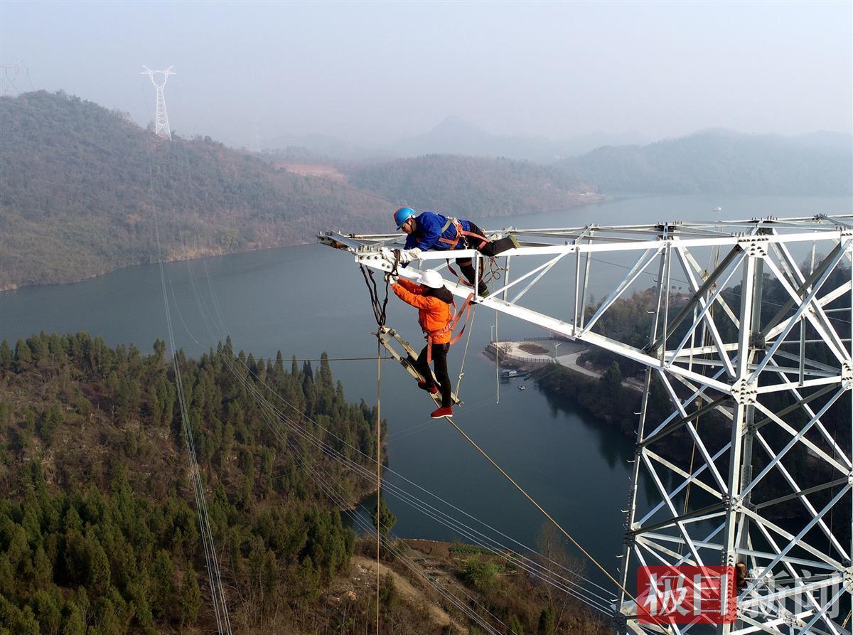 新年的清晨,在湖北省长阳县磨市镇柳津滩村清江边,国网湖北电力施工人员来到山顶工地,登上50多米高的G018号铁塔,用一场跨越清江的高空施工作业,开启新的一年。