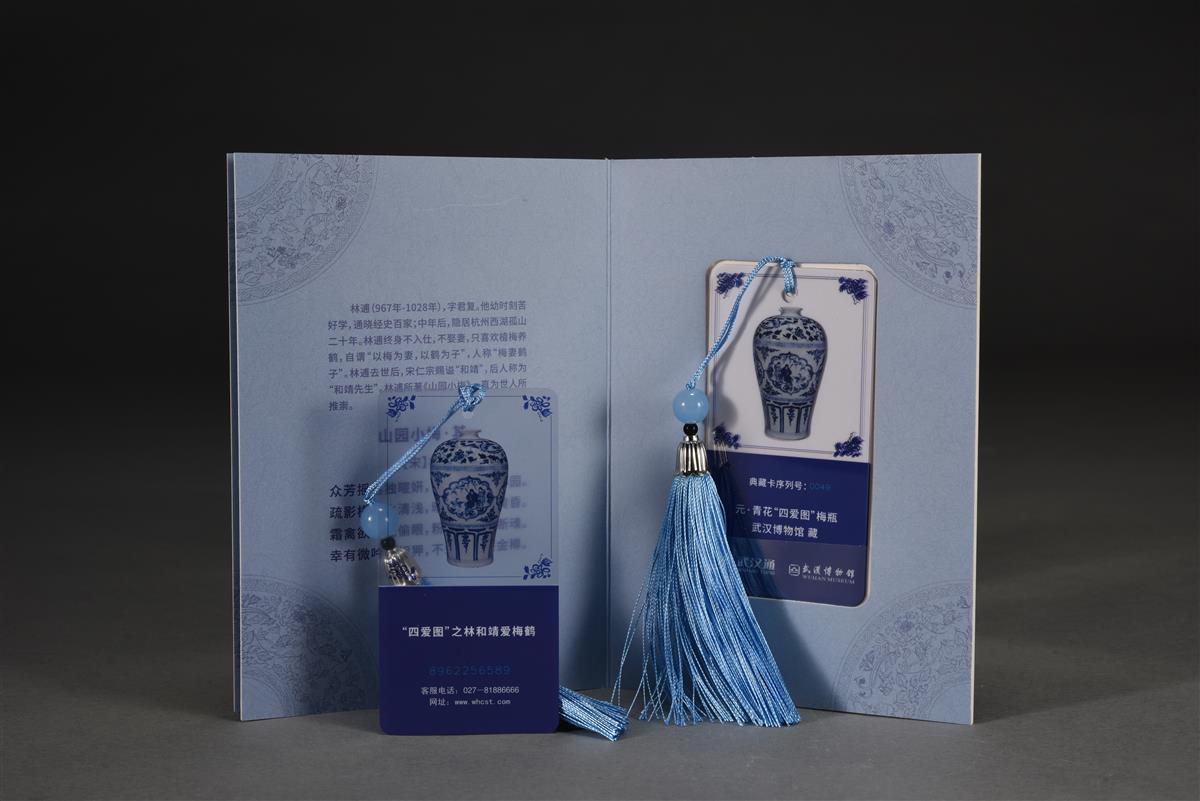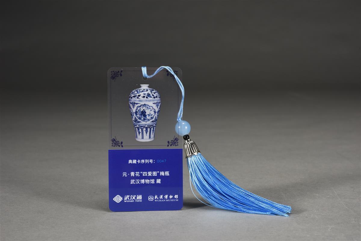 “元青花四爱图梅瓶” 是我国元代青花瓷器艺术的杰出代表,为武汉博物馆“镇馆之宝”。据介绍,此次联合推出的“元青花四爱图梅瓶”书签武汉通卡,取材于“四爱图”之一的“林和靖爱梅鹤”主题,整体呈现小轩窗设计,在色泽、图案上完美复刻了梅瓶的细节,颇具收藏价值。同时,兼顾书签和交通卡的功能,将历史文物与日常生活、交通出行相结合,实现文化遗产的另一种“传承”。