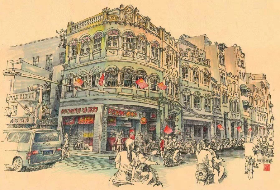 同样作为记录的一种形式,照片偏重写实,而画作则是多了几分想象力和浪漫主义色彩,画笔下的海口会呈现出别样风情。