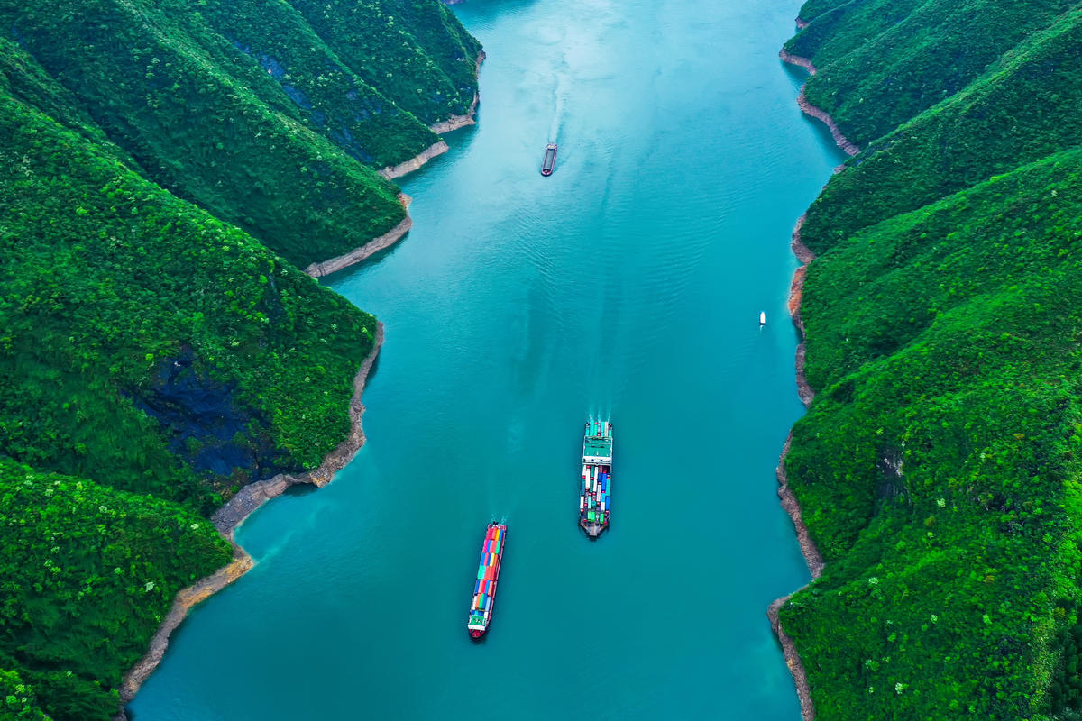 长江巫峡巴东段两岸青山如黛,船在画中游。(湖北日报全媒记者 陈勇 摄)