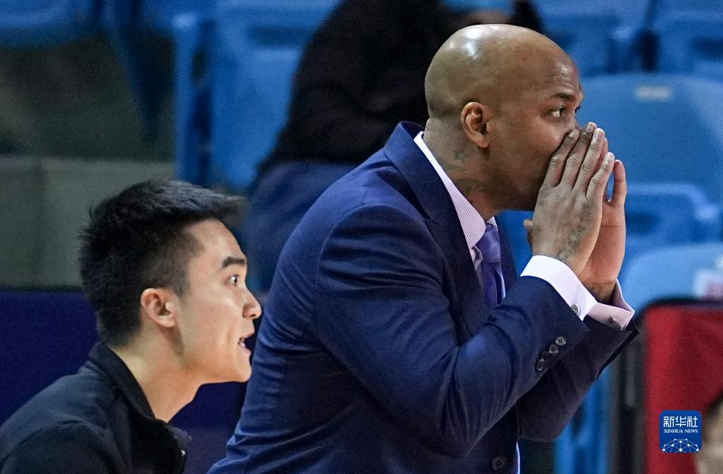 1月4日,北京控股队主教练马布里(右)在场边指挥。