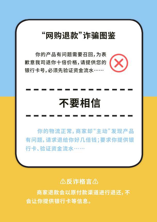 民警特别提醒:1、谨慎对待商家客服电话。接任何商家打来的客服电话,应第一时间到电商平台联系官方客服进行核实,凡要求转账的客服均涉嫌诈骗,务必提高警惕;2、坚决杜绝任何网络刷单。网络刷单是违法行为,国家法律法规及电商平台均明令禁止网络刷单等类型的虚假交易,网络刷单都是骗局。广大群众要遵纪守法,不可被蝇头小利所迷惑;3、如有疑惑,可拨打96110咨询。如接到涉及银行卡、微信、支付宝转账等类型的电话,必须保持警惕。如有疑惑,可拨打全国统一反诈预警专号96110咨询。