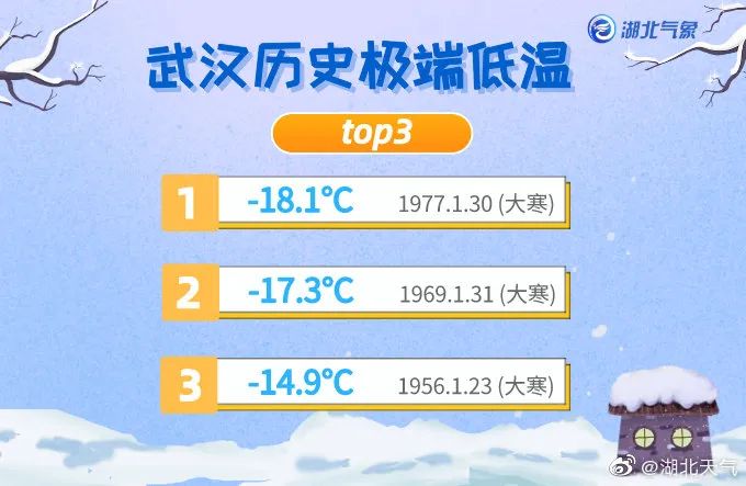 武汉历史排名前三的低温纪录均出现在大寒节气