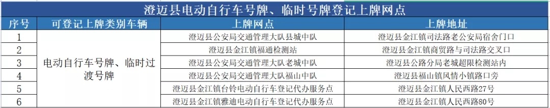 澄迈县电动自行车号牌、临时过渡号牌登记上牌服务网点