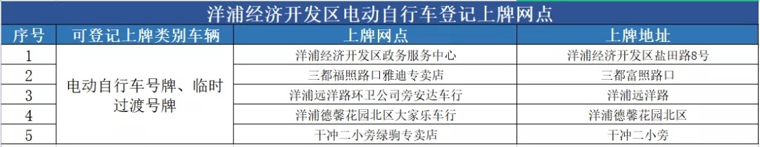 洋浦经济开发区电动自行车登记上牌服务网点