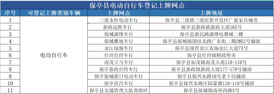 保亭县电动自行车登记上牌服务网点