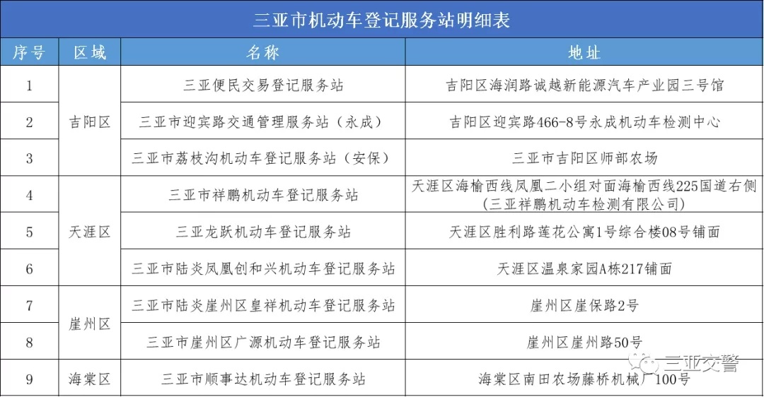 三亚市机动车、电动自行车登记上牌服务网点机动车登记服务站