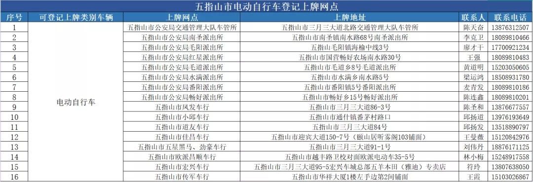 五指山市电动自行车登记上牌服务网点