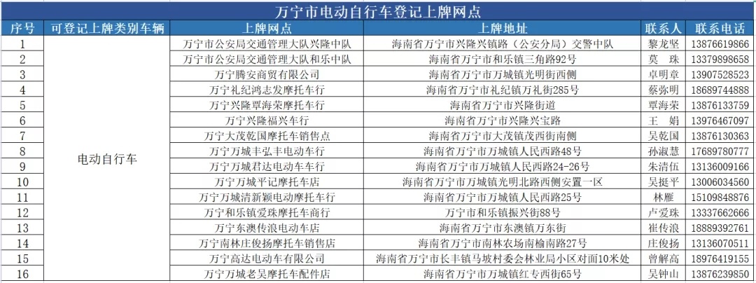 万宁市电动自行车登记上牌服务网点