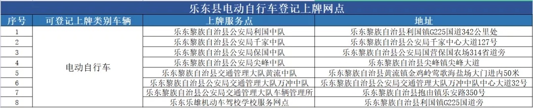 乐东县电动自行车登记上牌服务网点