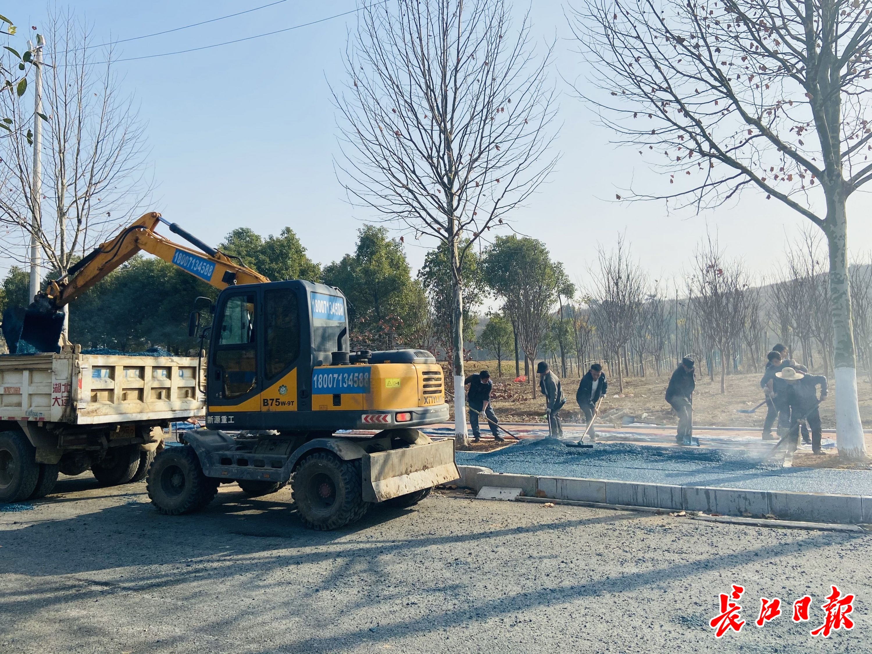 1月6日,在高新二路东段,工人们正忙着对非机动车道彩色沥青进行摊铺,人行道铺装的收边以及站石的清洗调整等。“目前绕城高速以东的路面沥青已铺得差不多了,剩下一些收口的位置比如道口要完善,路灯已经在大量安装了。“武汉生态投资集团下属市政路桥公司高新二路项目工程部长黄双全介绍。