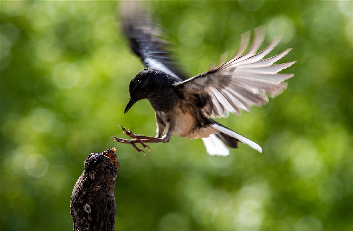 后来,这只鹊鸲当妈妈了,竟然还带着老公和雏鸟一起来讨吃的。杨河常以口哨与之交流,久而久之,只要听到杨河的口哨声,鹊鸲都会从别处快速飞过来。