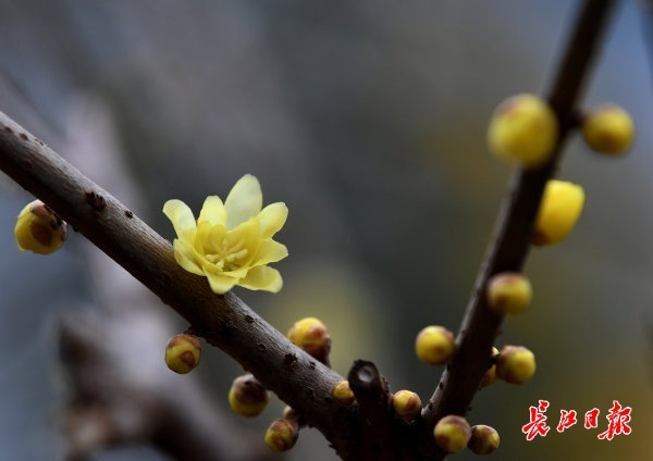 7日,中山公园蜡梅园内,黄色的蜡梅花次第开放,花香沁人心脾。 记者喻志勇 摄