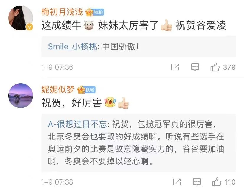 而国内的网友在看到谷爱凌摘金消息后,也毫不吝惜地向谷爱凌送上了祝贺。