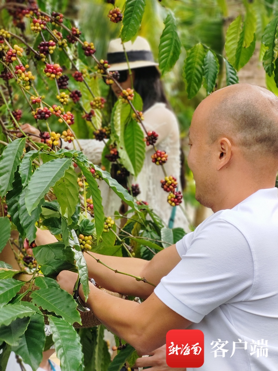 观众体验采摘咖啡鲜果。记者 张野 摄