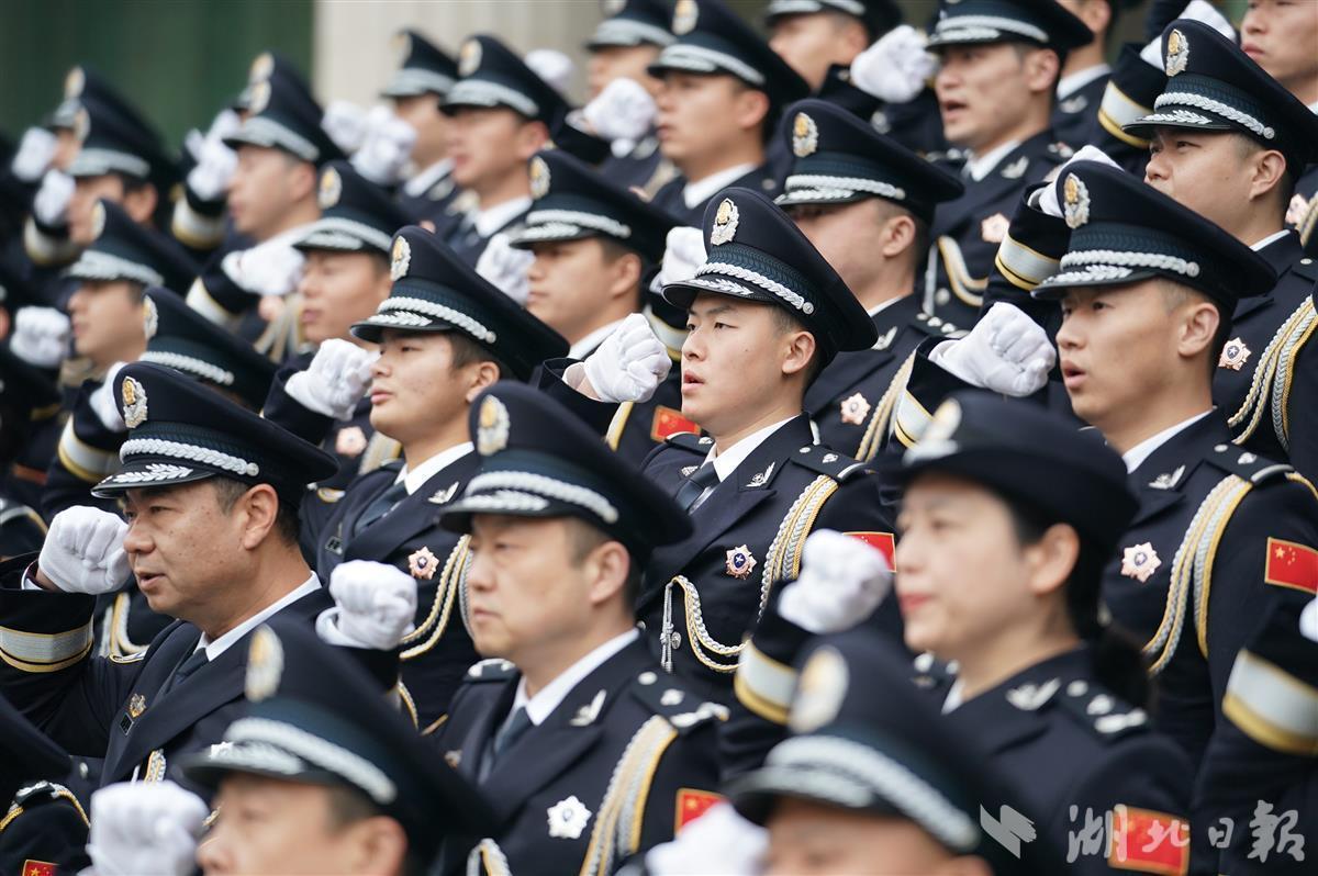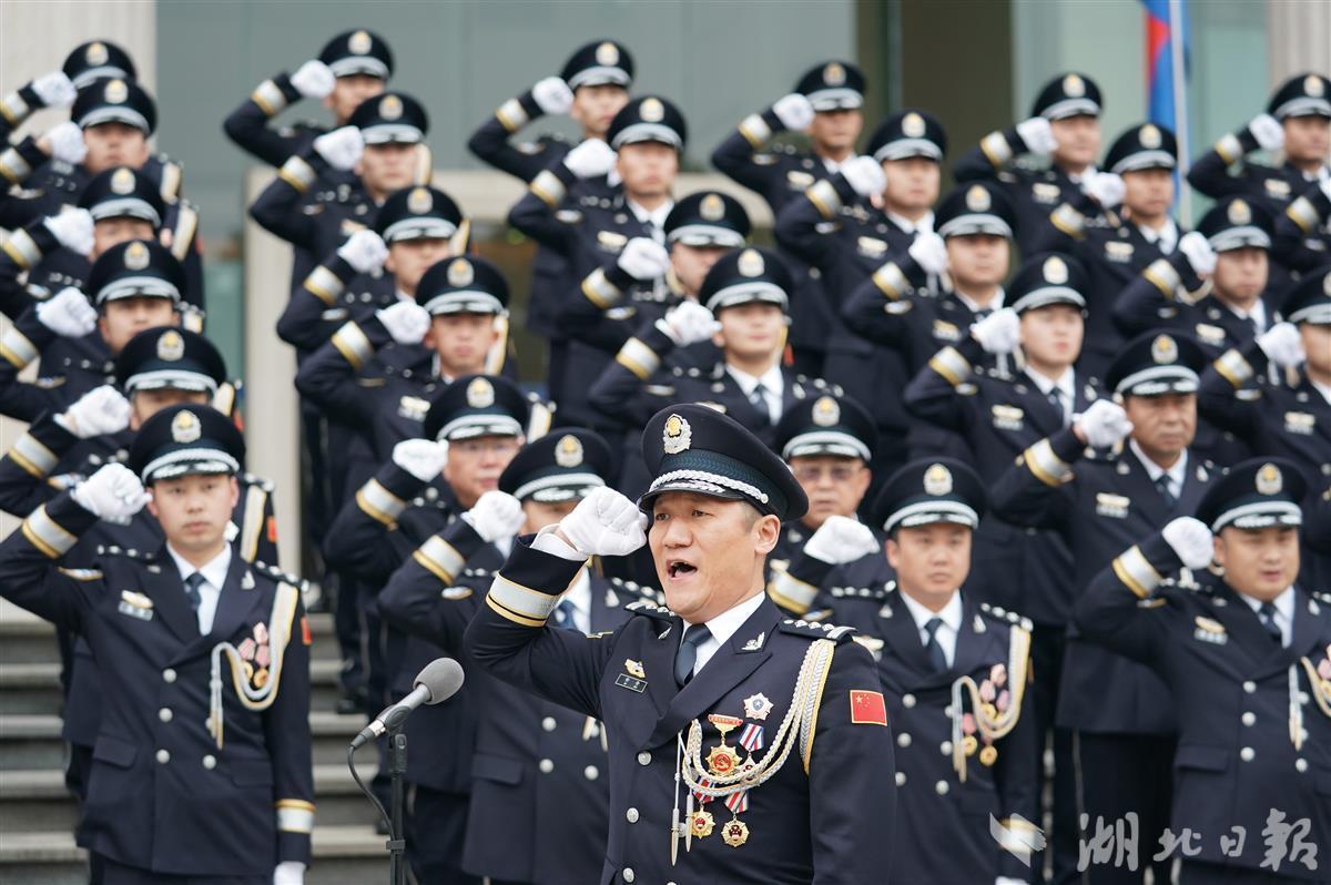 湖北日报讯(记者魏铼、通讯员应后威)1月9日,在第二届“中国人民警察节”即将来临之际,武汉市公安局举行升警旗及重温人民警察誓词活动。