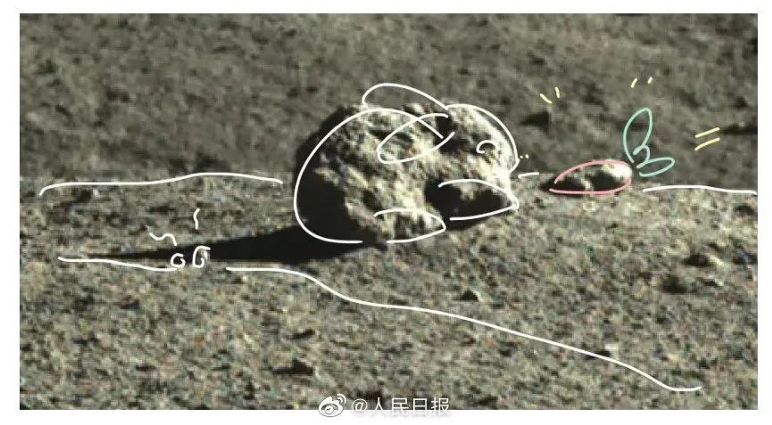 北京航天飞控中心的“玉兔二号驾驶日记”更详细地记录了这次惊奇的发现。“12月27日,玉兔二号唤醒后迎来第38月昼的工作,目标仍是继续北上……距离‘神秘小屋’只剩下10米左右的距离,终于可以揭开它的神秘面纱了,驾驶员立刻安排全景相机进行彩色成像!远在天际时仿佛凯旋门一样高大的‘神秘小屋’,走近看竟然甚是矮小,驾驶员们不免有些失望。正当大家失落之际,一个驾驶员盯着放大的画面,捂住嘴巴惊呼:‘天呐!这是……玉兔!’一只栩栩如生的兔子映入眼帘,‘玉兔’前面零落的石块仿佛一根胡萝卜,‘玉兔’后方滚圆的石珠仿佛‘玉兔’餐后的产物。眼前的景象恰如一只正要进食的兔子,画面妙趣横生,让人忍俊不禁。”目前玉兔二号在月球行驶里程累计已达到1003.9米。当下一次休眠唤醒时,玉兔二号还将近距离探测这个“神秘小屋”,并对它身后的大型撞击坑进行感知。