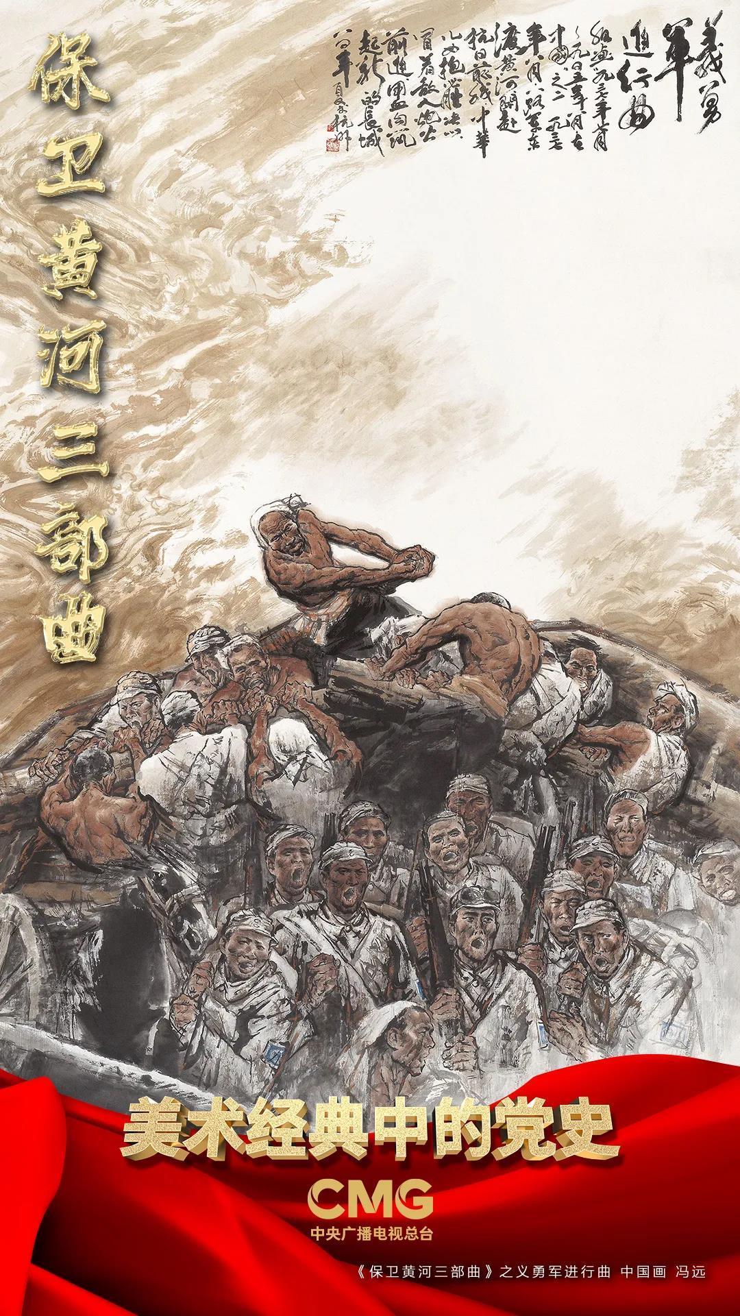 1984年,画家冯远创作了保卫黄河系列画作,以《百年家国耻》《义勇军进行曲》《北定中原日》三幅组画,再现了伟大抗日战争波澜壮阔的图景。