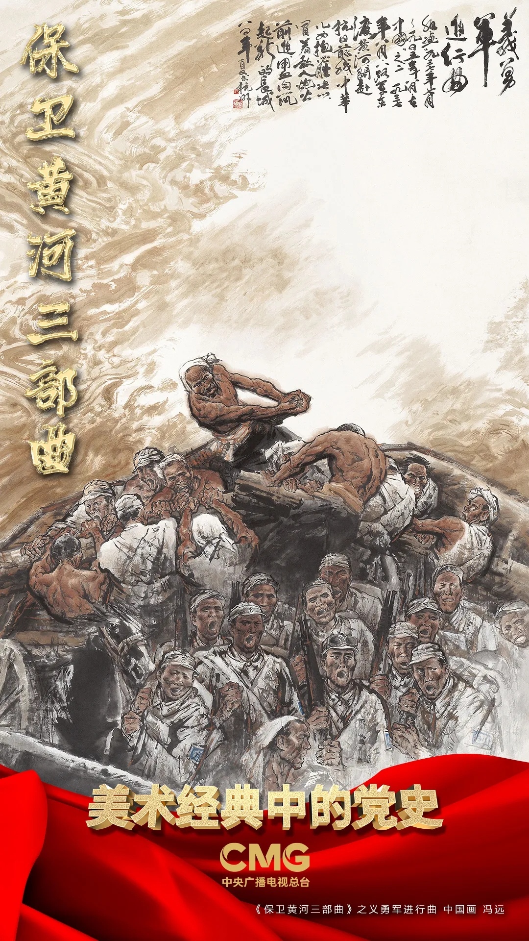 距离画作《保卫黄河三部曲》诞生已经过去了三十余年,我们仿佛能再一次听到民族不屈精神的嘹亮歌声——那里有大地悲壮的呜咽、有黄河奔腾的咆哮、也有浴血胜利的凯歌。