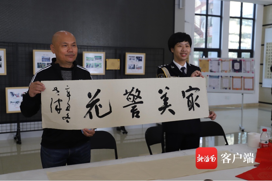 活动现场,昌江黎族自治县公安局民(辅)警和昌江文艺界人士围绕“不负初心使命,彰显警察风采”为主线,展出诗联、书法、美术、摄影等104幅作品,充分展现昌江人民警察队伍忠实履行新时代使命任务的新担当新作为。现场书法家还给民(辅)警赠送书法作品。
