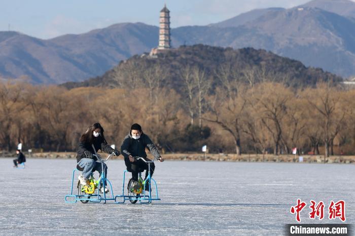 图为10日上午,在颐和园冰场骑行的游客。 中新社 易海菲 摄
