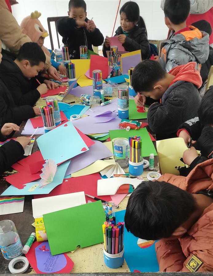 志愿者们将鸿岭花园社区的祝福视频、爱心捐赠和社区小朋友制作的贺卡带给新乐小学的学生,并带领新乐小学的学生们制作贺卡回馈社区的孩子们,为两地的孩子架起一座沟通的桥梁,互相帮助、互相感受爱,一起进步、一起向前走。