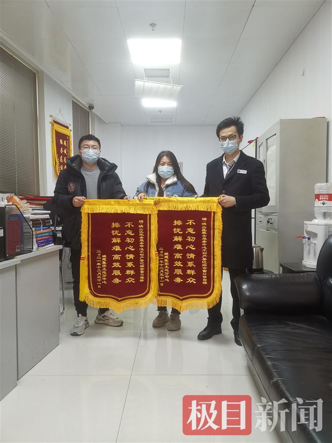 “我感受到窗口工作人员蒋珍、曾自雄一直在积极主动为自己想办法,被他们真诚、热心的服务态度所打动。”李女士表示,为了感谢工作人员的暖心服务,特意在业务办理完成后专门定制锦旗送至洪山不动产登记窗口。