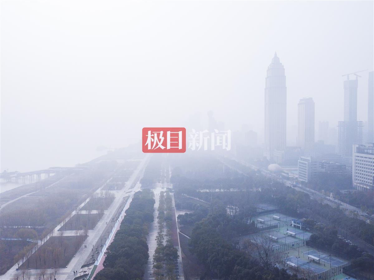 1月11日,武汉出现大雾天气,三镇雾气朦胧,如水墨画般淡雅。