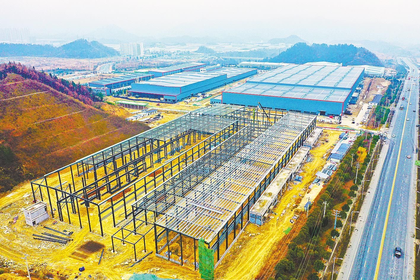 1月6日,东风智能装备产业园(十堰张湾)铸铁车间在加紧建设中。该车间总建筑面积2.5万平方米,投资1.2亿元,正在进行钢结构及屋面施工,预计4月完工,届时将形成模具和机床等装备铸铁件3万吨产能,预计年产值1.5亿元。 (湖北日报全媒记者 田悦 通讯员 黄宇 杨钦硕 摄)