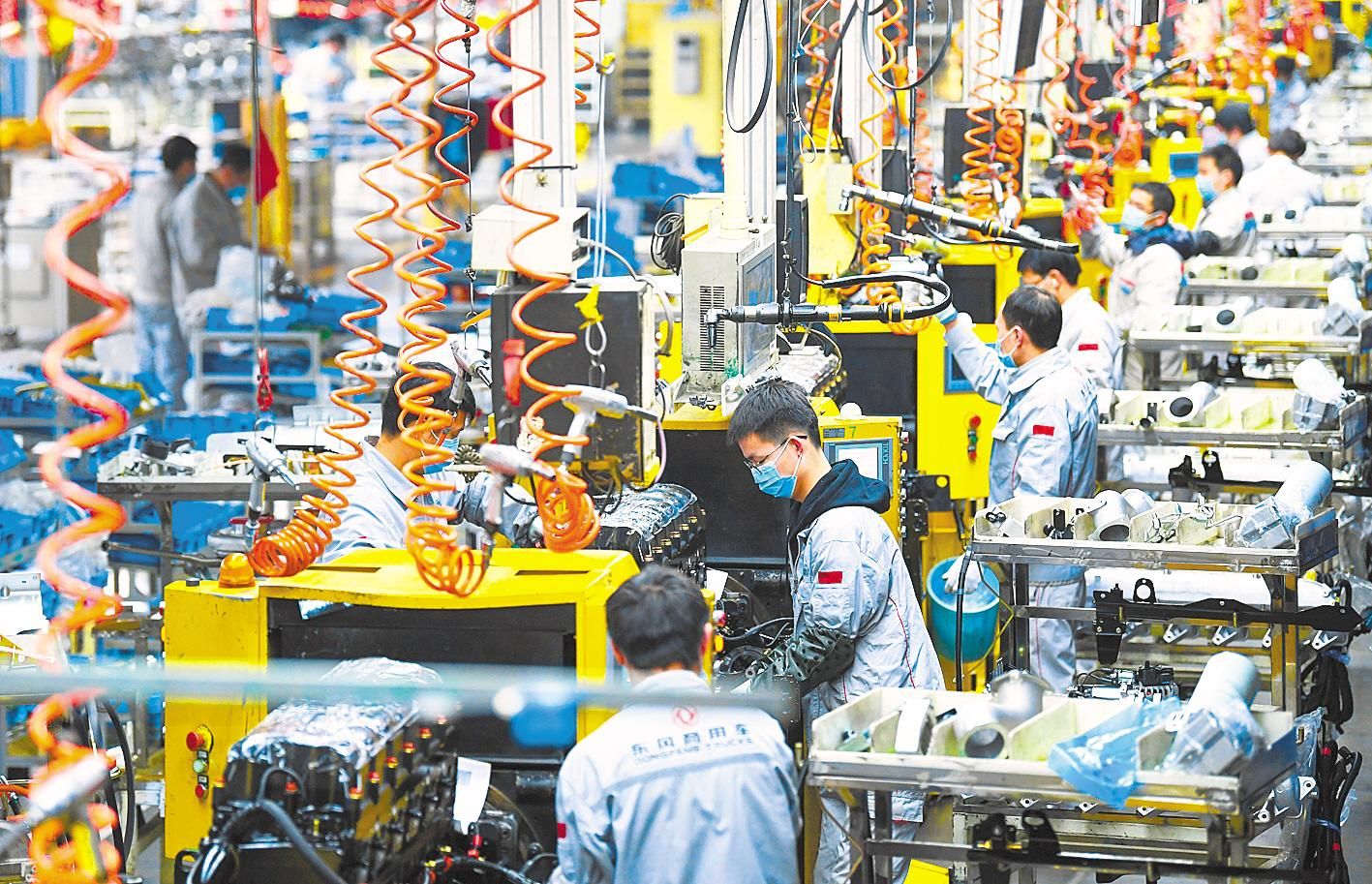1月6日,十堰工业新区东风商用车公司动力总成事业部,工人正在生产线上忙碌。 (湖北日报全媒记者 田悦 通讯员 徐春晓 摄)