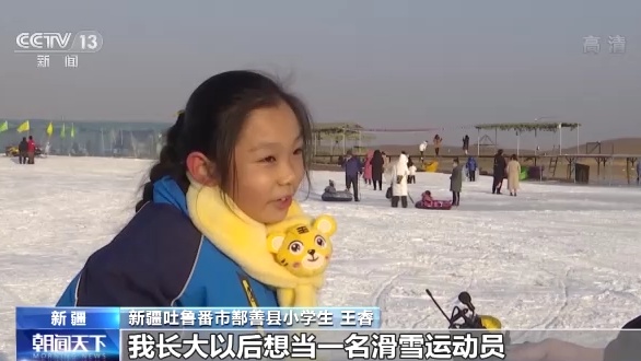 新疆吐鲁番市鄯善县小学生 王睿:今天爸爸妈妈带我到这里玩雪,我很开心,也很刺激。长大以后我想当一名滑雪运动员,在这里祝北京冬奥会举办成功。