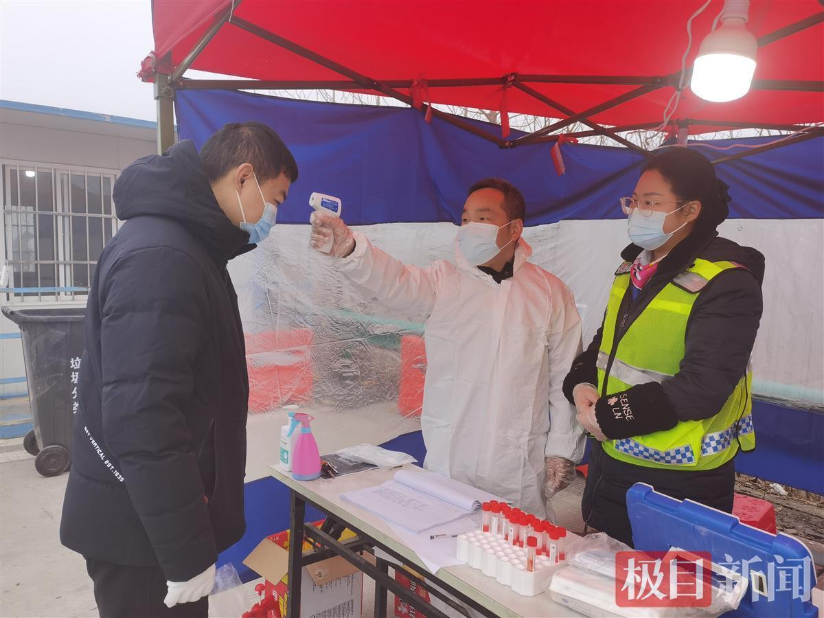 1月12日8时,大雾正浓,冷气逼人,仙桃北收费站出口仍不时有车被管制路段分流下道,眼看广场车辆排成长龙,地方政府在站口设立的防疫点人员一刻不停地引导每辆车扫码、测体温;收费站工作人员也主动出击,积极配合当地防疫部门,用广播提醒司乘提前准备好健康码、行程码,配合体温检测。在有序引导下,检测速度越来越快,因等待造成的堵塞现象也逐渐消失。