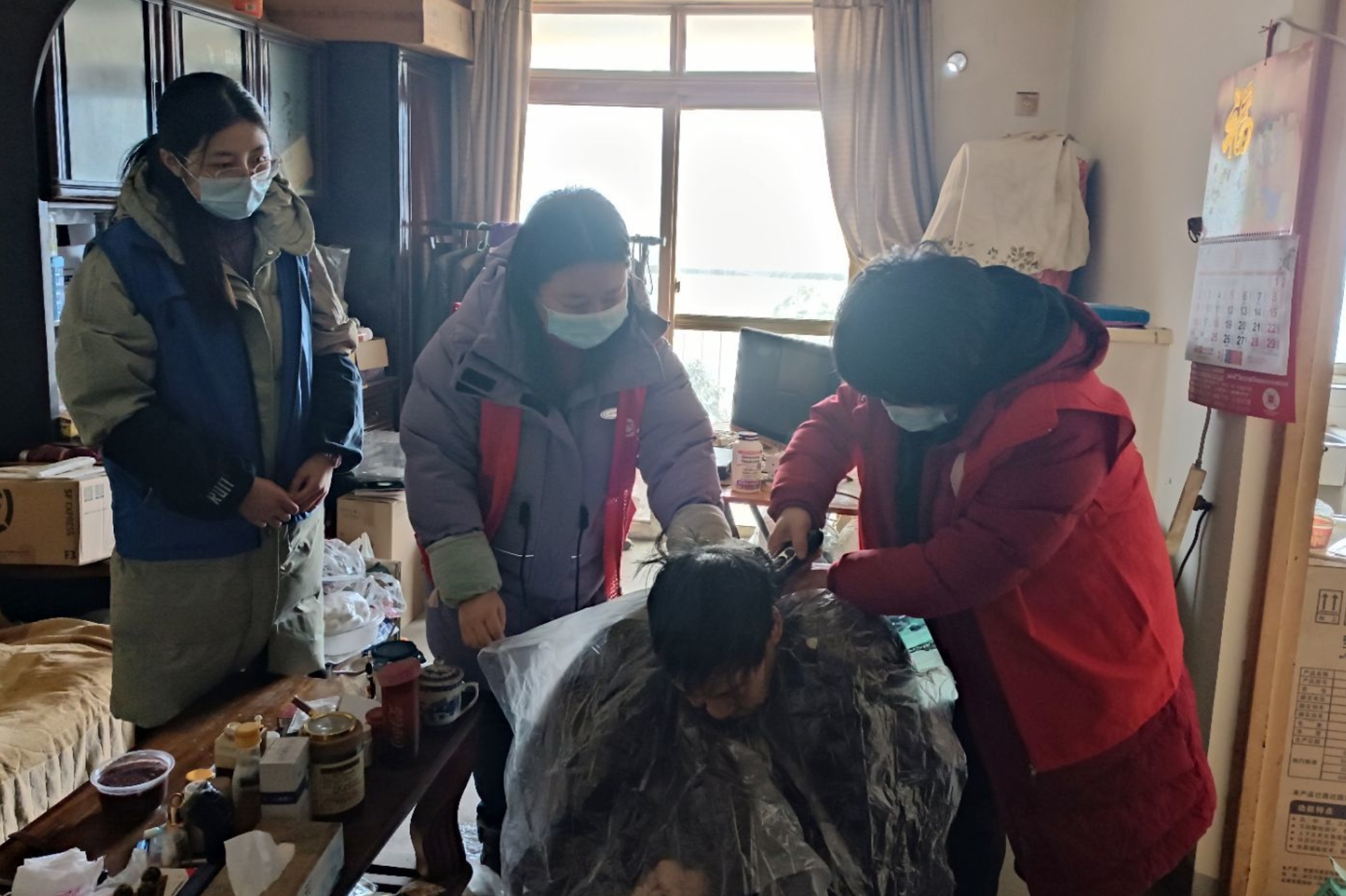 从陈婆婆家出来,社区工作人员一行又马不停蹄地去了低保户徐书华家中……一上午,社区为辖区5户居民送上了节日的礼物,提供了上门剪发服务。