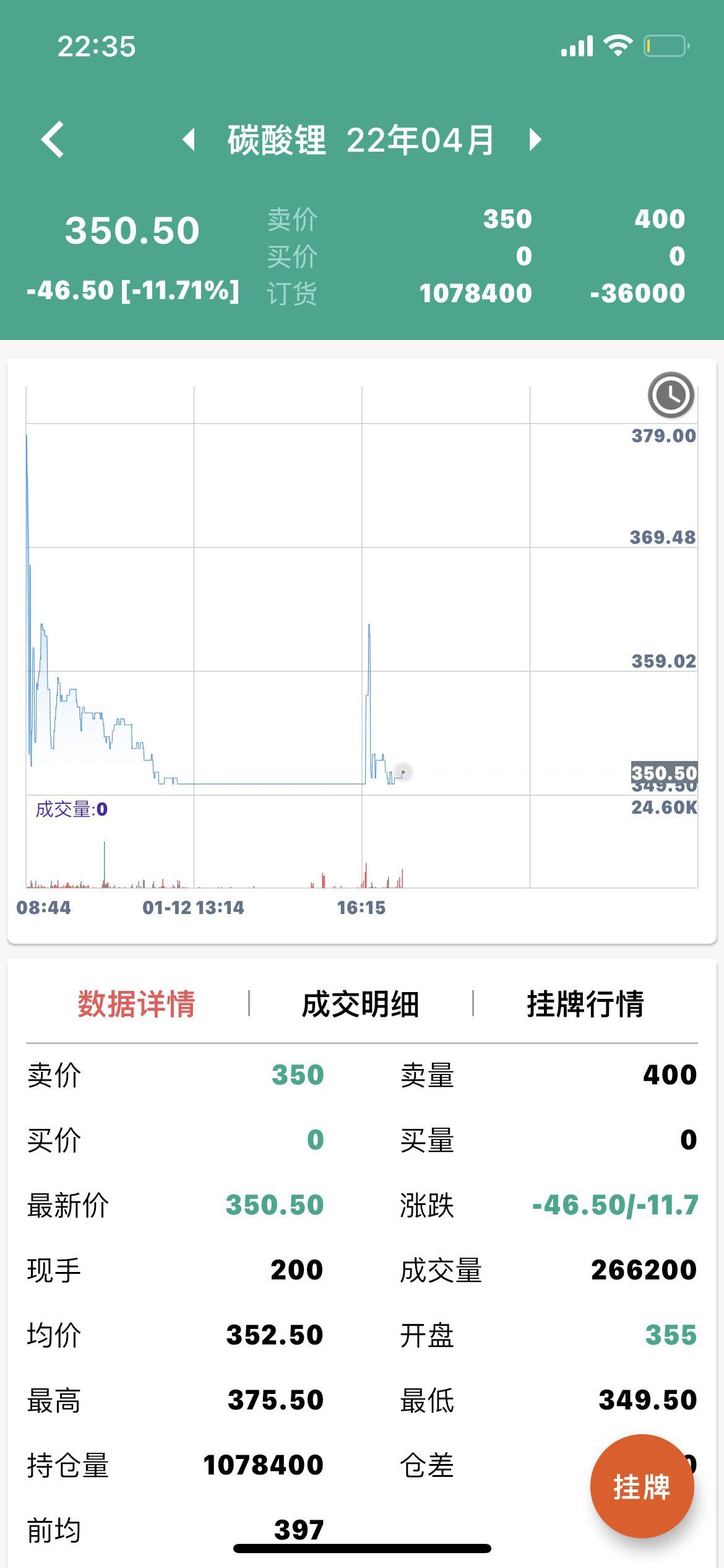 该交易平台显示,目前共上市了3个碳酸锂合约,分别于2022年2月、4月、6月到期合约。1月12日均跌超11%,收盘价分别为345.5元/公斤、350.5元/公斤、355元/公斤,转换单位后约合35万元/吨,下跌后仍略高于目前的现货价格。