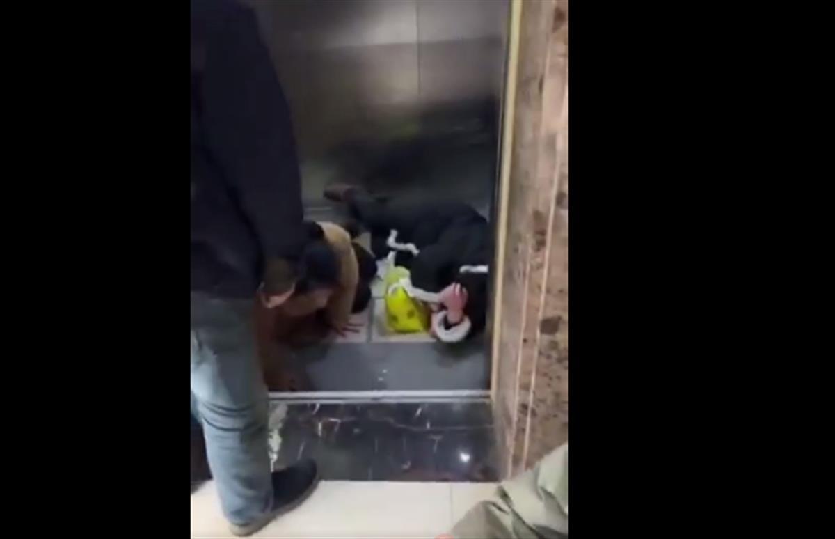 多段网络视频显示,两名女子躺在电梯轿厢内痛苦地呻吟着,一名女子坐在电梯外的地面,说自己从15楼进的电梯。多名急救人员拿着担架赶到现场,对受伤者展开救援。