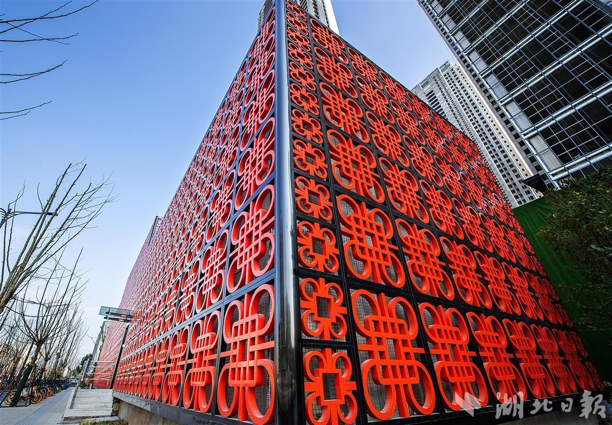 1月13日,武汉地铁5号线余家头站A出口外,有一栋被中国结装饰得严严实实的红房子吸引了路人,成为和平大道上最美最有特点的房子之一。