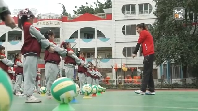 给孩子们上课的体育教练和孩子们互动很融洽,她不仅教给孩子们排球的基本技能,还时不时展示一些自己的拿手绝活,让孩子们很兴奋。