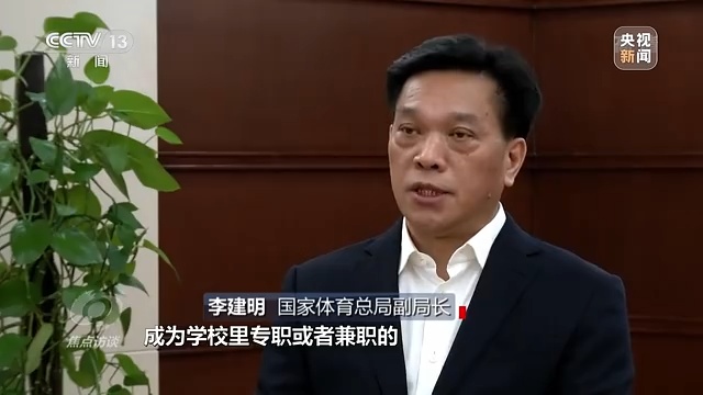 国家体育总局副局长 李建明:我们有大量优秀的退役运动员和体校的教练员,如果能让他们组织起来,成为学校里专职或者兼职的教练员和体育教师,可以在很大程度上弥补师资的不足,更重要的是可以提高专项运动技能水平。