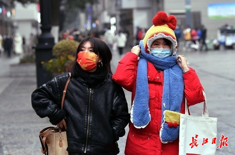 14日,武汉江汉路上,穿着各色冬装的市民给这个冬天增添了一抹亮色。长江日报记者喻志勇 摄