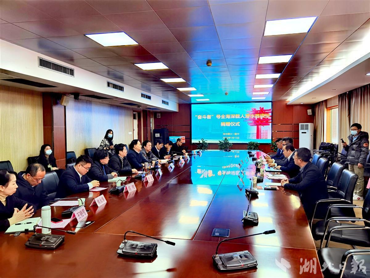 湖北日报讯(记者张歆、通讯员孙梦嘉)1月15日,华中师范大学第一附属中学(简称“华师一附中”)获赠“奋斗者号”全海深载人潜水器模型,模型制作比例为1:6,捐赠方为长广建设集团。