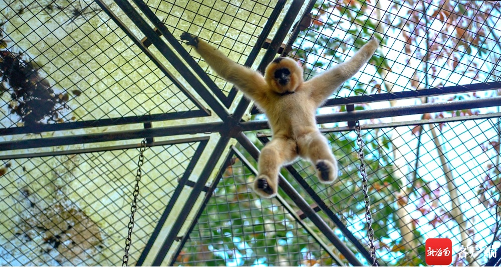 新海南客户端、南国都市报、南海网1月16日消息(记者 刘孙谋 通讯员 李冬林)1月16日上午,在海南热带野生动物园举办了欢迎雌性白颊长臂猿“命大”仪式。15日,经过一天的奔波,“命大”从杭州安全抵达海口,经过一晚的适应期后,清晨伴随着雄性白颊长臂猿“亮亮”高亢的鸣叫声,“命大”精神抖擞地在枝头上跳跃。
