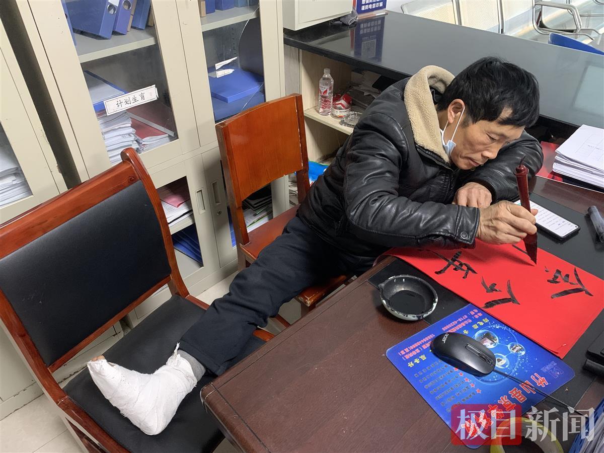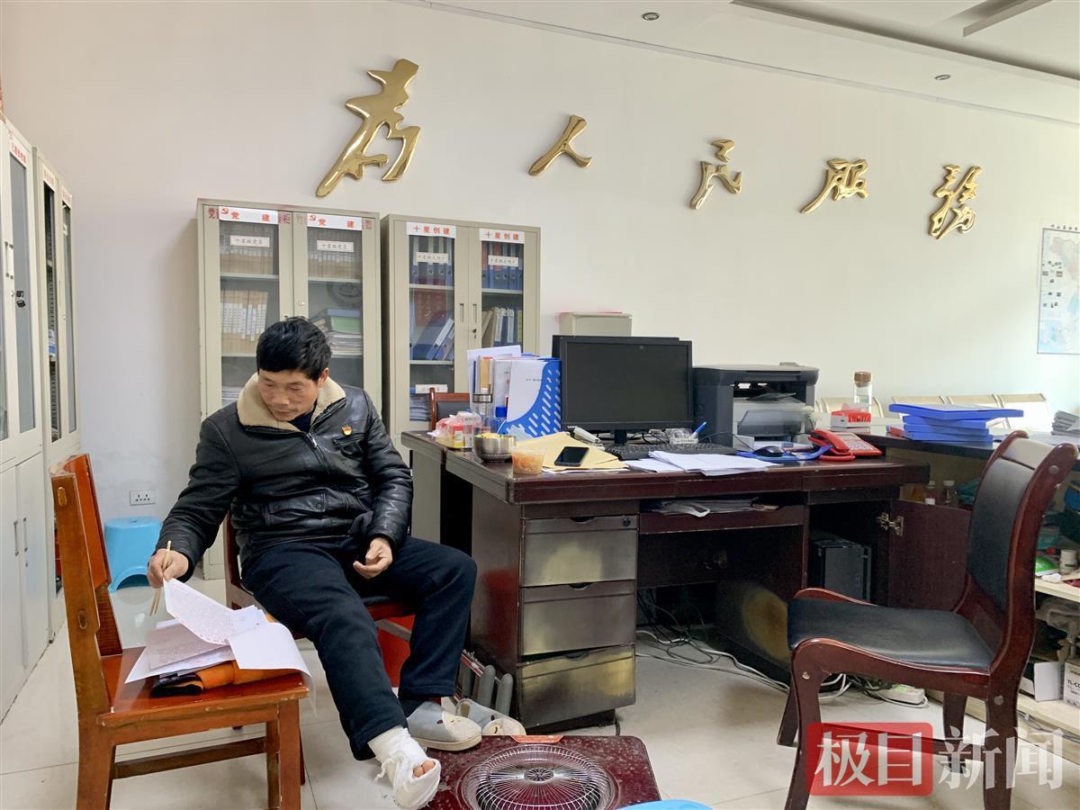 因为行走不便,有些工作不好开展,于是汪飞就叫来了刚大学毕业的儿子到村委会帮忙,顺便照顾自己。为了不耽误工作,汪飞一坐就是半天,为了让右腿减少肿胀,他只能把腿翘在一旁的椅子上。“汪书记的工作一件都没有落下,他的手机没有停过,谈的都是工作上的事情,这种不喊累不怕苦,对工作认真负责的敬业奉献精神值得村干部们学习。”村支书金德全说。
